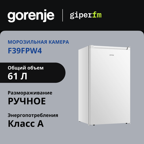 Морозильная камера Gorenje F39FPW4 61 л, тихая работа 39 дБ, 8 часов поддержания температуры, белая