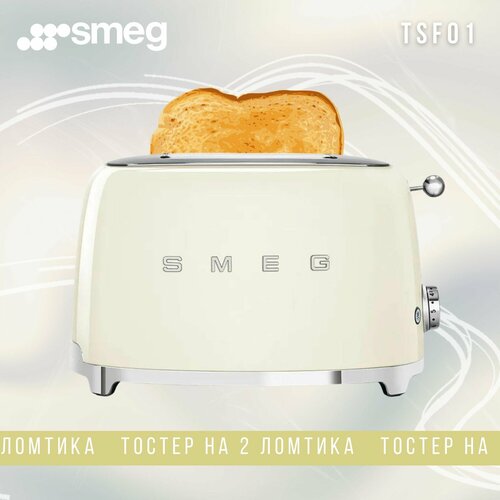 Тостер SMEG TSF01CREU на 2 ломтика, Кремовый