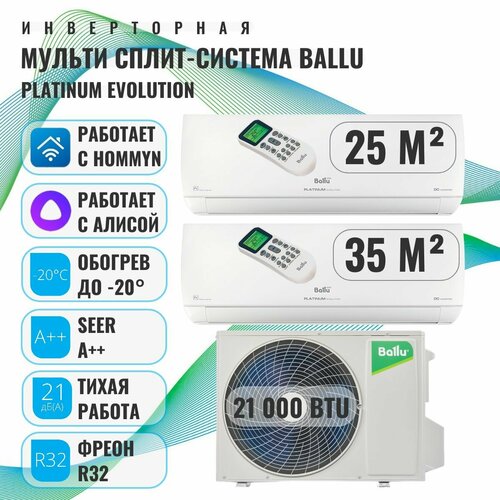 Инверторная мульти сплит-система Ballu Platinum Evolution на 2 комнаты BSUI-FM-09+12 HN8/EU BA3OI-FM/out-21HN8/EU