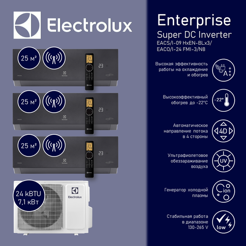 Мульти сплит-система на 3 комнаты Electrolux Enterprise EACS/I-09 HEN-BLх3/EACO/I-24 FMI-3/N8