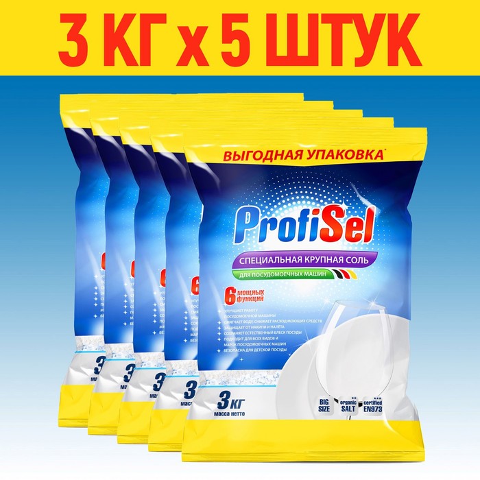 Соль для посудомоечных машин ProfiSel крупнокристаллическая, 3кг х 5шт. 100056841957