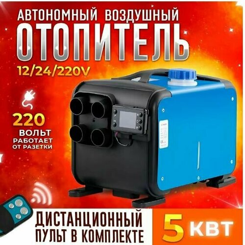 Автономный воздушный отопитель дизельный12-24-220 Вольт 4 сопла 5 Квт со встроенным топливным баком