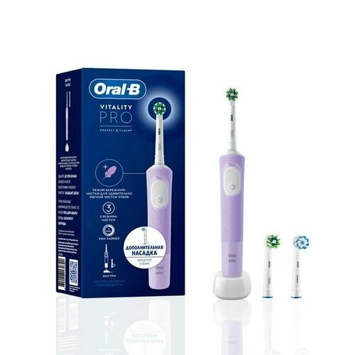 Набор Oral-B/Орал-би Щетка зубная электрическая 3708 с зарядкой 3757 сиреневая Vitality Pro+Насадка сменная Sensitive clean EB60