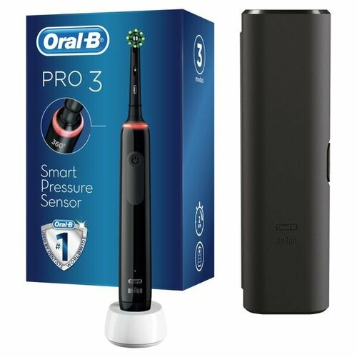 Щетка зубная электрическая Pro 3 D505.513.3X BK 3772 с зарядным устройством 3757 черная+чехол дорожный Oral-B/Орал-би