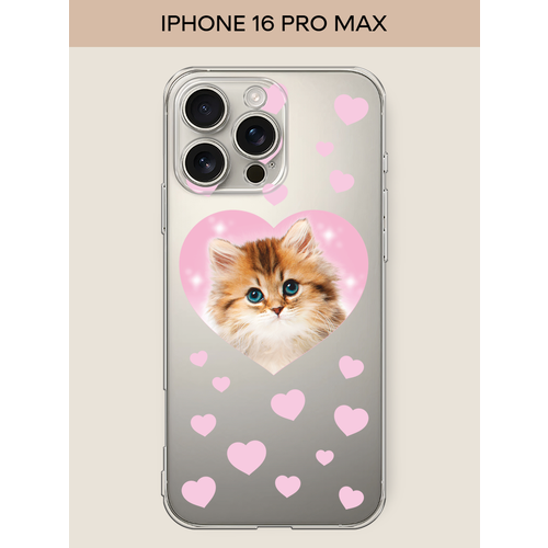 Чехол на Apple iPhone 16 Pro Max / Айфон 16 Про Макс с принтом Котенок в сердце, прозрачный
