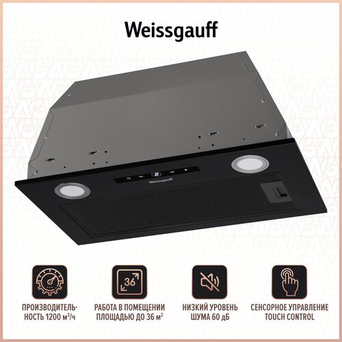 Встраиваемая вытяжка Weissgauff TEL 05 1M BL, цвет корпуса черный, цвет окантовки/панели черный