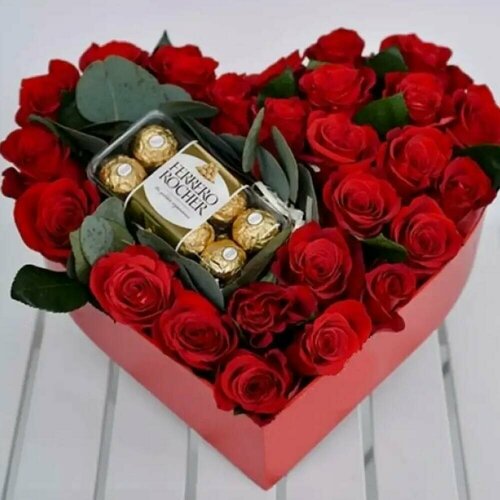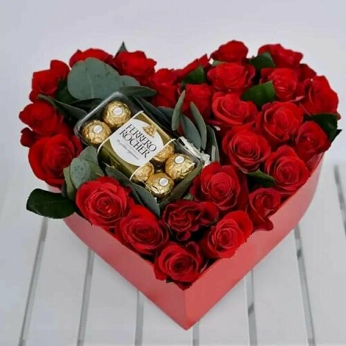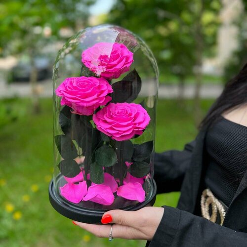 Трио «Люкс» розы в колбе в оттенке фуксия в подарочной коробке с вау эффектом /32 см