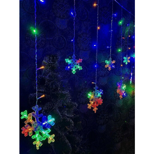Гирлянда занавес снежинки, 2,5*1м, 220в , разноцветный свет