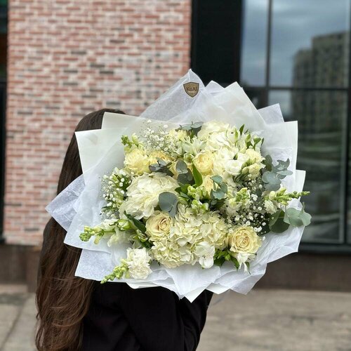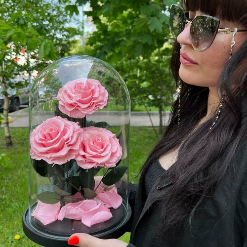 Трио «Люкс» нежно-розовые Розы в колбе в подарочной коробке /32 см