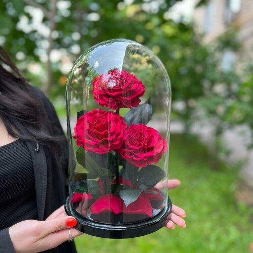 Трио «Люкс» винные розы в колбе в подарочной коробке /32 см