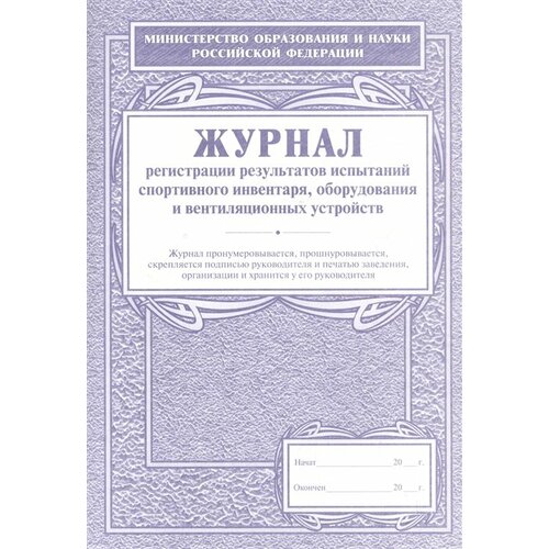 Журнал регистрации результатов испытаний спортивного инвентаря, оборудования и вентиляционных устройств