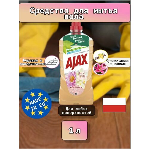 Чистящее средство для пола Ajax "Лилия и Ваниль", антибактериальное, универсальное, 1 л