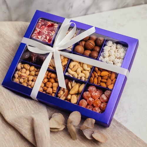 Подарочный набор из отборных орехов и сухофруктов"Премиум" Синий 1400г