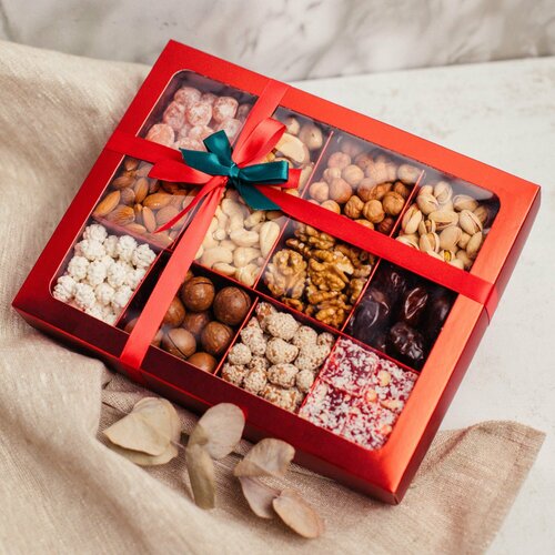 Подарочный набор из отборных орехов и сухофруктов"Премиум" Красный 1400г