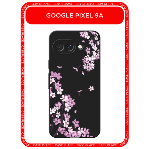 Черный матовый чехол на Google Pixel 9a / Гугл Пиксель 9a с принтом Сирень рисунок
