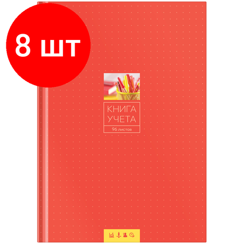 Комплект 8 шт, Книга учета OfficeSpace, А4, 96л, клетка, 200*290мм, твердый переплет 7БЦ, блок офсетный