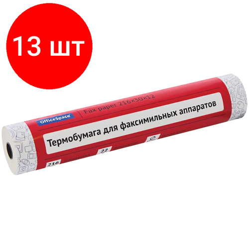 Комплект 13 шт, Ролик для факса из термобумаги OfficeSpace, 216*12 (22м)