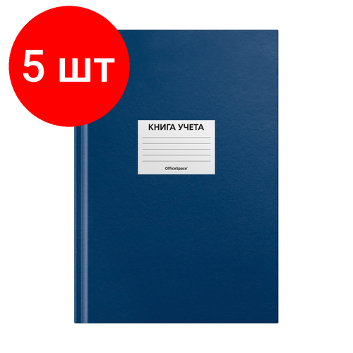 Комплект 5 шт, Книга учета OfficeSpace, А4, 192л, клетка, 200*290мм, бумвинил, цвет синий, блок офсетный, наклейка