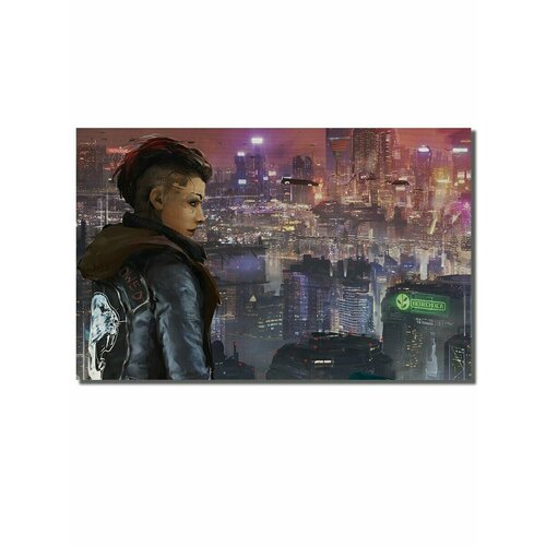 Картина интерьерная на дереве, рисунок настольные игры Cyberpunk Red - H 239
