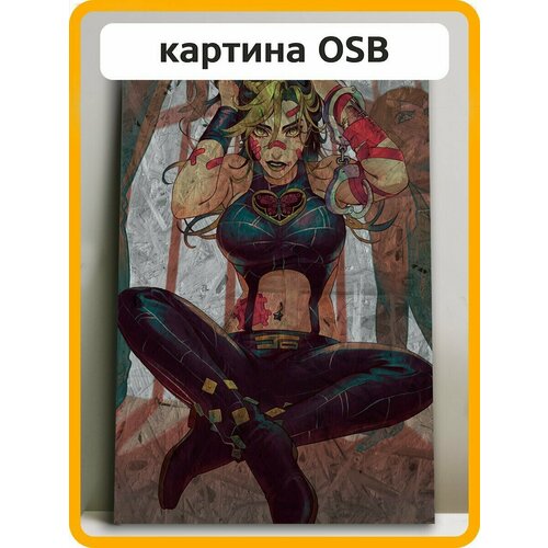 Картина интерьерная на рельефной доске, рисунок Аниме JoJo ДжоДжо Джолин Куджо - 7628 В