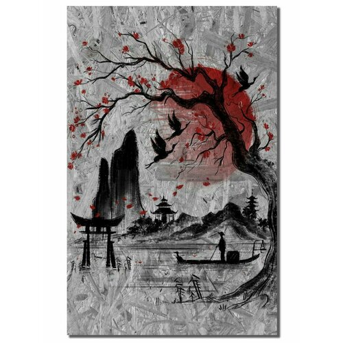 Картина интерьерная на рельефной доске, рисунок китайская живопись - 915 В