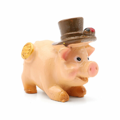 AS15-02, Миниатюра. Свинка в коричневой шляпе с монетой 3*1 см 100043406290