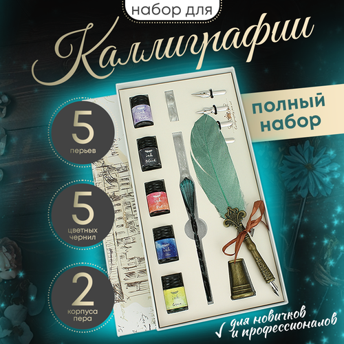 Перьевая ручка с чернилами, подарочный набор для каллиграфии с 2 перьями и тушью, 5 наконечников, 5 цветов чернил