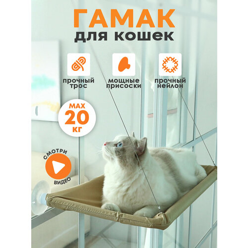 Гамак для кошек и котов на окно подвесной до 20 кг / Лежанка полка на присосках AT
