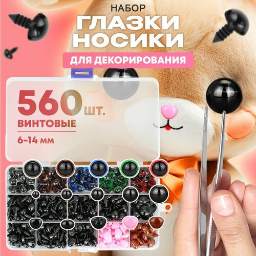 Набор для декорирования мягких игрушек и кукол, большой набор глазок и носиков с заглушками, винтовые, 560 предметов