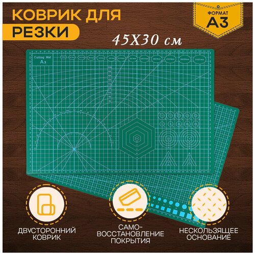 Коврик для резки 45х30 см зеленого цвета / Коврик для творчества / Макетный коврик