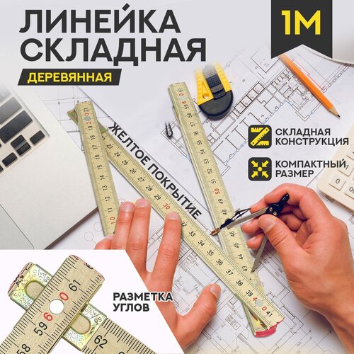 Линейка деревянная складная с желтым покрытием, L-1м