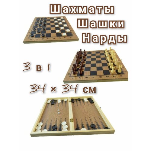 Шахматы Шашки Нарды 3 в 1 деревянные / поле 34 см х 34 см