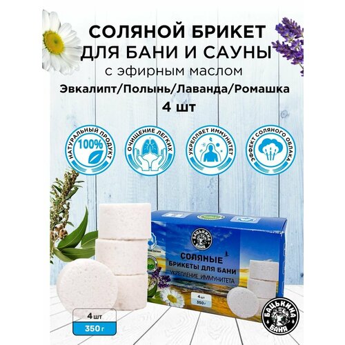 Натуральная соль для бани "Укрепление иммунитета" с эфирными маслами Эвкалипт, Полынь, Лаванда, Ромашка 350 гр. Соляной брикеты для бани и сауны.