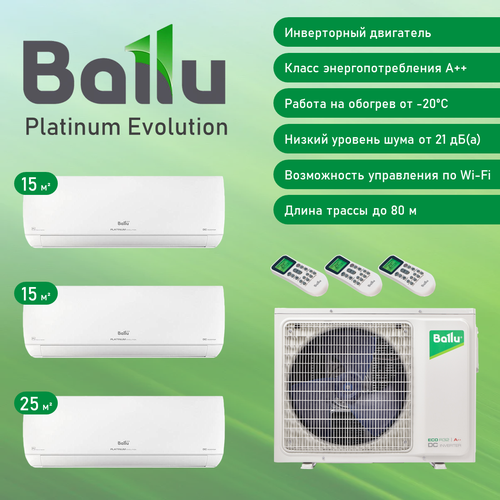 Мульти сплит система на 3 комнаты Ballu Platinum Evolution BSUI-FM-07+07+12HN8/BA3OI-FM-21HN8