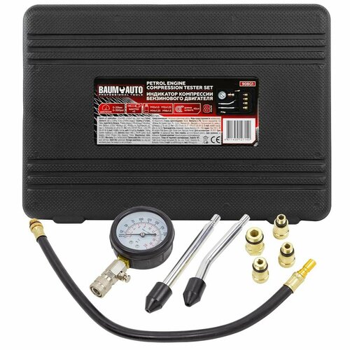 Индикатор компрессии бензинового двигателя Profi 8пр.(0-21Bar, М10, М12, М14, М18 + 2 жестких прижимных адаптера-переходника) , в кейсе Baum Auto BM-908G1