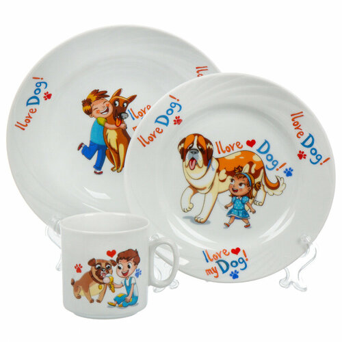 Набор детской посуды керам, 3 шт, Мой любимый пес, круж 200мл, тарел 175мл, салат200мл, Добруш, 8С0791