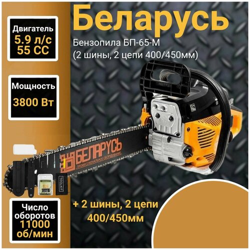 Пила цепная бензиновая Беларусь БП-65-M (2 шины, 2 цепи 400/450мм) 5,9 л. с. 3800Вт, 11000об/мин