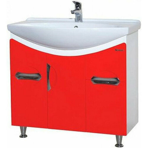 Тумба с раковиной красный глянец/белый глянец 86,5 см Bellezza Лагуна 4632114110038 + 4620008197357