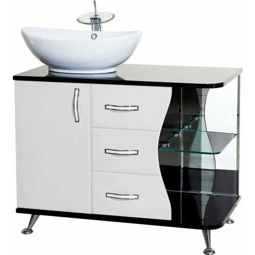 Тумба с раковиной белый глянец/черный глянец 91 см Bellezza Рио 4633615142269 + 4620008193823