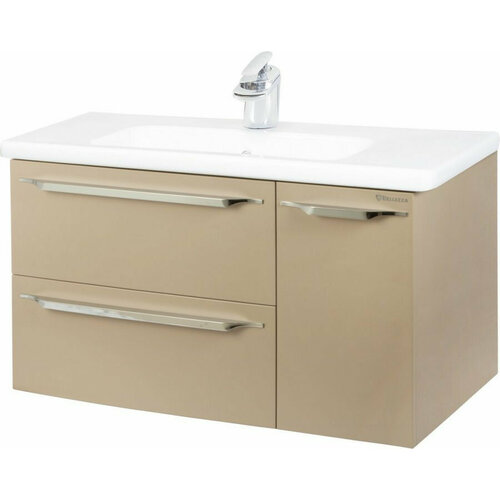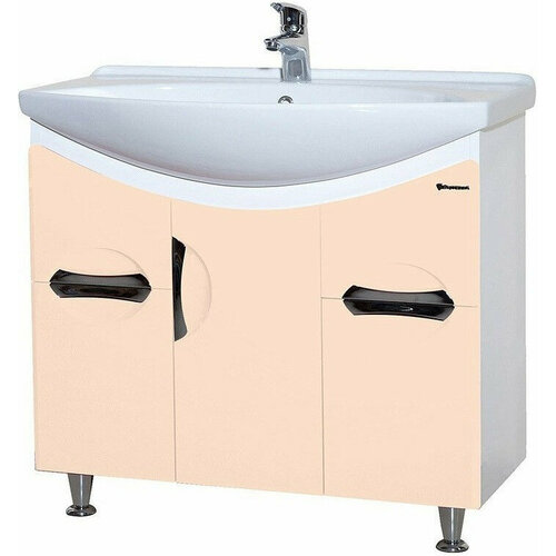 Тумба с раковиной бежевый глянец/белый глянец 86,5 см Bellezza Лагуна 4632114110076 + 4620008197357