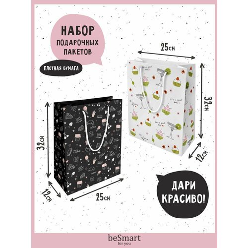 Пакет бумажный, подарочный, beSmart, 25х32, Коллекция "Awesome", сладости. Набор 2 шт.