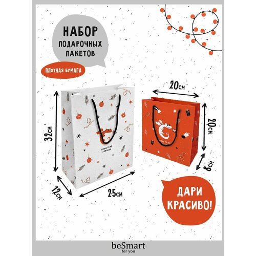 Подарочный бумажный пакет beSmart "New Year/Christmas" 25х32 см и 20х20 см, набор 2 шт