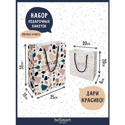 Подарочный бумажный пакет beSmart "Terrazzo" 25х32 см и 20х20 см, набор 2 шт