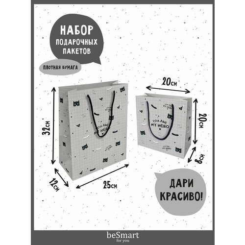 Подарочный бумажный пакет beSmart "Skate" 25х32 см и 20х20 см, набор 2 шт