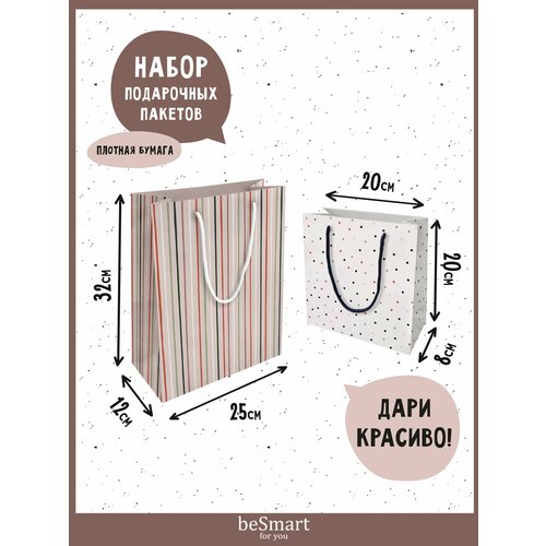 Подарочный бумажный пакет beSmart "Pretty" 25х32 см и 20х20 см, набор 2 шт