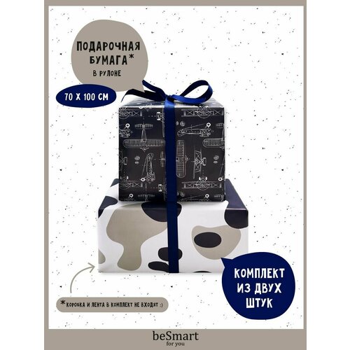 Бумага оберточная упаковочная для подарков beSmart "June" 70х100 см, набор 2 рулона