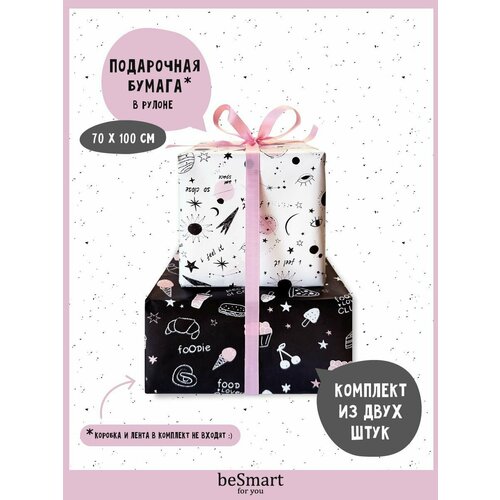 Бумага оберточная упаковочная для подарков beSmart "Awesome" 70х100 см, набор 2 рулона
