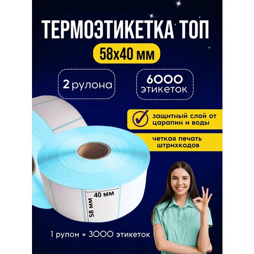 Термоэтикетка 58х40 1000 этикеток Топ качество 4 рулона