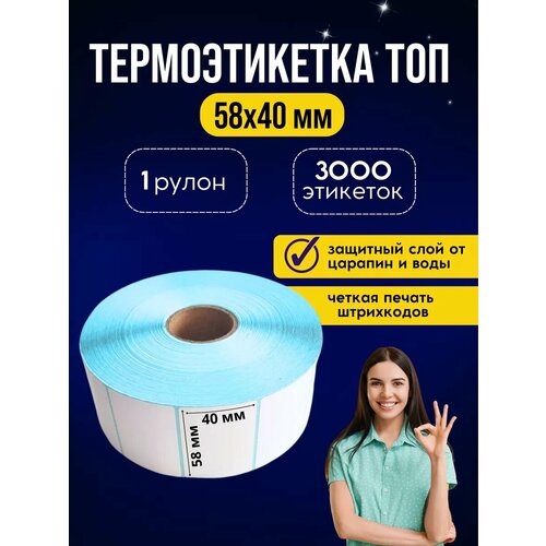 Термоэтикетка 58х40 1000 этикеток Топ качество 1 рулон