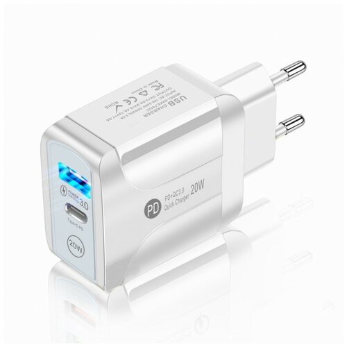 Зарядное устройство для быстрой зарядки PD20W 5V3A, USB, Type-c QC3.0, белое